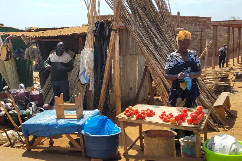 Souvenirmarkt in het centrum van Lilongwe bezoeken.